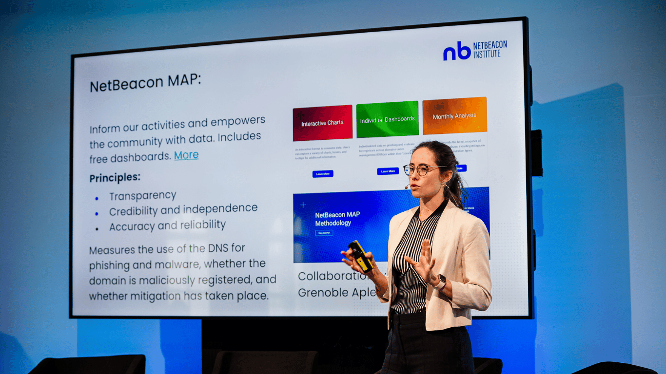 R.Schoo prezentēja pētījumu par DNS drošību Baltijas valstīs un iepazīstināja ar iniciatīvu NetBeacon, kas palīdz reģistriem un reģistratūrām proaktīvi apkarot pikšķerēšanas un ļaunatūras izplatīšanas gadījumus. Pētījums parādīja, ka Baltijas domēnu zonas — .EE, .LV un .LT — ir vienas no drošākajām Eiropā, ar īpaši zemu ļaunprātīgas izmantošanas līmeni. Tomēr atsevišķi strauji augošām reģistratūrām nākas saskarties ar riskiem, kas saistīti ar nepietiekamu pārbaudes mehānismu un klientu izglītošanu.