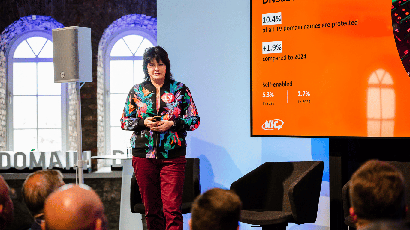 Latvijas prezentācija bija vērsta, lai parādītu, cik .LV domēna zona ir stabila un uzticama. 2025. gadā reģistrēto domēna vārdu skaits joprojām atspoguļo nelielu, tomēr stabilu izaugsmi, līdz koneferencemi brīdim sasniedzot jau 1% pieaugumu salīdzinot ar pagājušo gadu. Tāpat varam būt lepni, ka atjaunoto domēna vārdu skaits - 81,9% ir salīdzinoši augsts rādītājs domēnu vidū. DNSSEC parakstītu domēna vārdu skaits turpina lēnām, bet stabili pieaugt - 2025.gada laikā tas audzis par +1,9%. .LV domēna statistikas apskata noslēgumā K.Sataki uzsvēra, ka lielāko daļu .LV domēnu vārdu reģistrē juridiskās personas (59%), un visaktīvākā grupa ir milleniāļi (29 - 44 gadi) un jaunie uzņēmēji. Interesanti, ka Latvijā populārāki kļūst arī jaunie vispārējie domēni (gTLDs), piemēram, .click un .top. Starp .LV reģistra jaunumiem K.Sataki minēja lietotnes DNS ugunsmūra izveidi, kas veidots un uzturēts sadarbībā ar CERT.LV, alternatīvās strīdu risināšanas pakalpojuma, kas tiek nodrošināts sadarbībā ar WIPO un AutoPay ieviešanu.